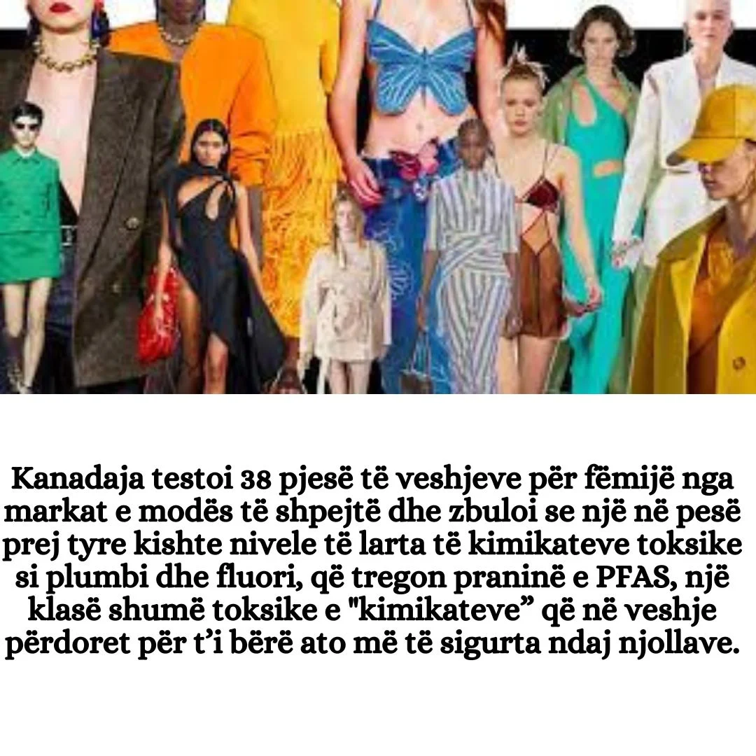 Kanadaja testoi 38 pjesë të veshjeve për fëmijë nga markat e modës të shpejtë dhe zbuloi se një në pesë prej tyre kishte nivele të larta të kimikateve toksike si plumbi dhe fluori, që tregon praninë e PFAS (kimikat me veti toksike), një klasë shumë toksike e “kimikateve” që në veshje përdoret për t’i bërë ato më të sigurta ndaj njollave.