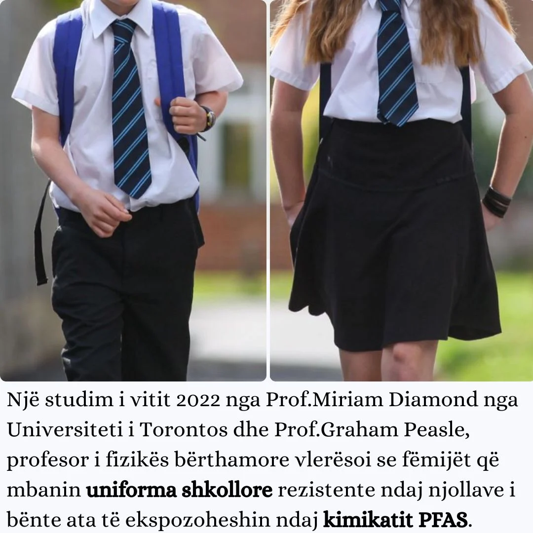 Një studim i vitit 2022 nga Prof.Miriam Diamond nga Universiteti i Torontos dhe Prof.Graham Peasle, profesor i fizikës bërthamore vlerësoi se fëmijët që mbanin uniforma shkollore rezistente ndaj njollave i bënte ata të ekspozoheshin ndaj kimikatit PFAS. Ky kimikat është shkaktar i disa formave të kancerit, krijon çrregullime në organet riprodhuese, ndikon në obezitet dhe në rënien e sistemit imunitar. Kur grumbullohet në gjak, PFAS konsiderohen toksike në nivele që krijojnë probleme të rënda shëndetësore.