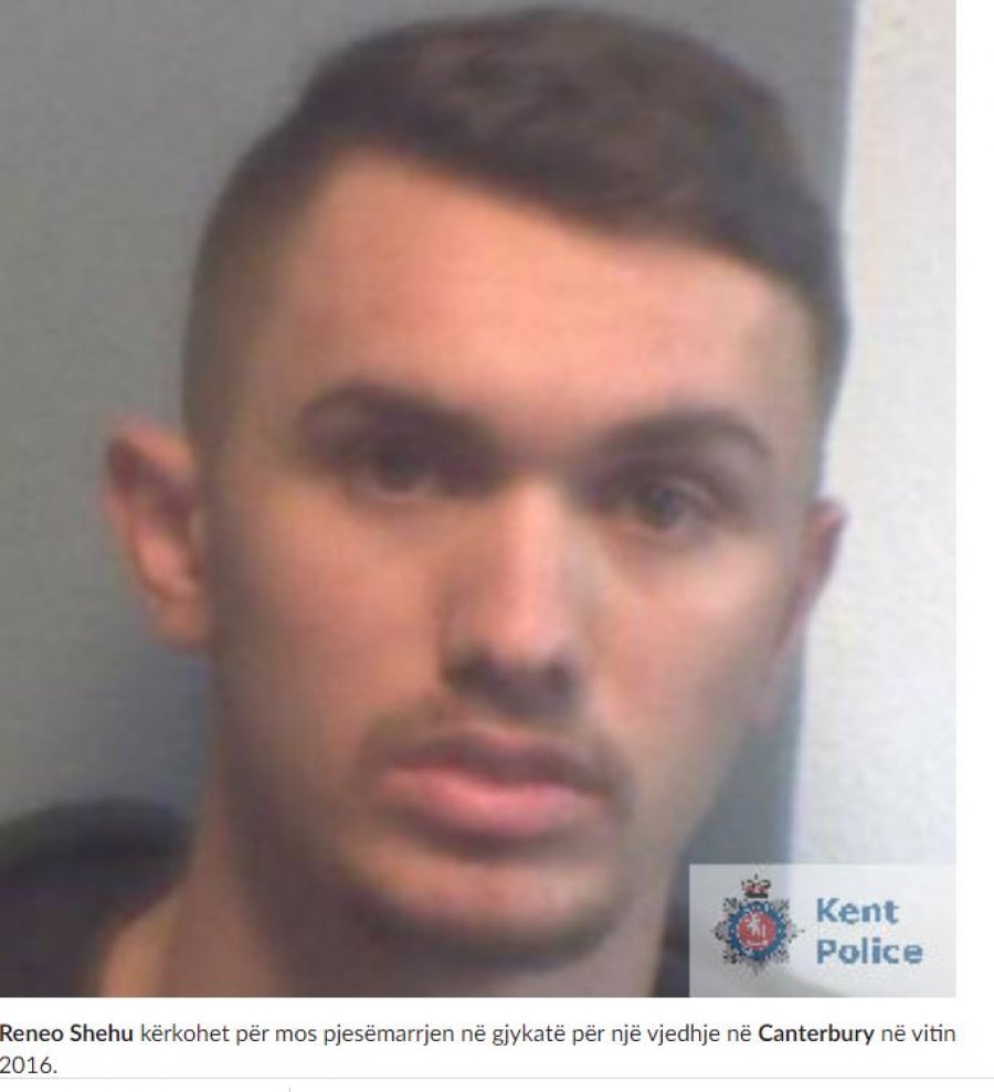 Reneo Shehu është një prej tyre i cili u la i lirë me kusht por nuk u paraqit në gjykatën Canterbury Croën Court ku duhet të gjykohej për grabitje dhe shitje droge të klasit A K okainë. Shehu në vitin 2017 është dënuar me 7 vite e 6 muaj b urg për grabitje me ar më të një shtëpie në zonën Ëantedn e Canterbury në Jug të Anglisë.