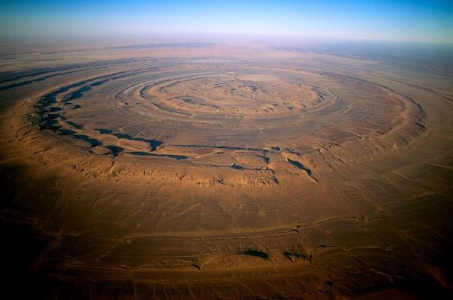 Ngjan me një sy të keq, vorbulla e pabesueshme 30 milje në Mauritania, Afrikë e njohur si Struktura Richat është e dukshme nga Stacioni Hapësinor Ndërkombëtar. Mendohet se i paraprin shfaqjes së jetës në Tokë dhe besohet se është një krater i shkaktuar nga një meteorit.