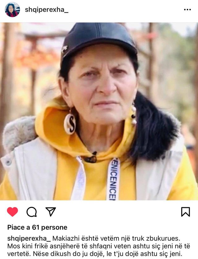 Së fundmi, ajo ka bërë një postim në profilin e saj në “Instagram”, ku ka dhënë një mesazh shumë të bukur për të gjitha femrat. Ajo u bën thirrje atyre që të mos kenë frikë që të shfaqen ashtu siç janë në të vërtetë.
