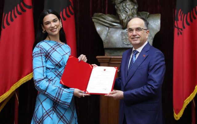 Presidenti i Republikës Bajram Begaj i dha shtetësinë shqiptare Dua Lipës, këngëtares me origjinë shqiptare, të famshme tashmë në të gjithë botën.
