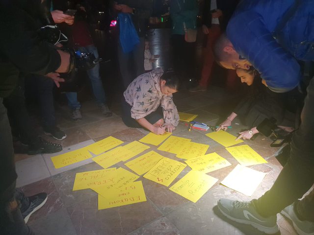 Ata janë mbledhur në Sheshin Skënderbej dhe kanë vendosur fletushka me shprehje motivuese dhe përkrahëse ndaj të moshuarës, duke e cilësuar ngjarjes si shumë të rëndë.