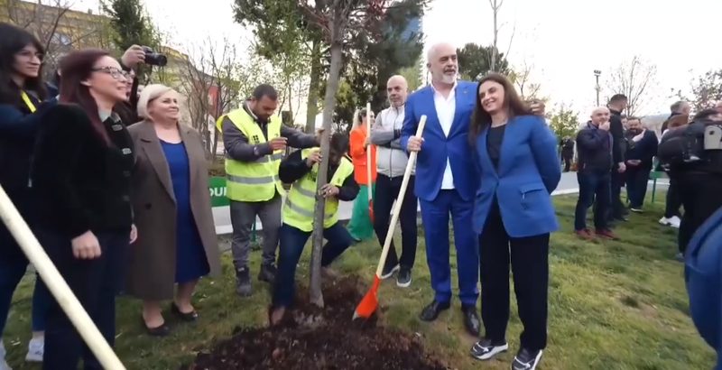 Ndërkohë, pas fjalës së tij, 61 kandidatët për kryetarë bashkie nën logon e PS nisën të mbillnin pemë, ndërsa Rama s’i kurseu batutat. Ai pasi ftoi kandidaten e Durrësit për të mbjellë pemën e saj, e cilësoi atë numrin 2. Më pas Rama sugjeroi që kamerat të shkonin te kryebashkiaku aktual i Tiranës, Erion Veliaj, duke thënë se; çojini kamerat te Lali se ai s’bën dot pa to. Ne jemi mësuar’.