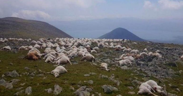 Banorët vendas mbetën të tronditur sepse më shumë se 500 dele u gjetën të ngordhura pasi thuhet se u g oditën nga një rrufe ndërsa kullotnin në një kullotë malore.