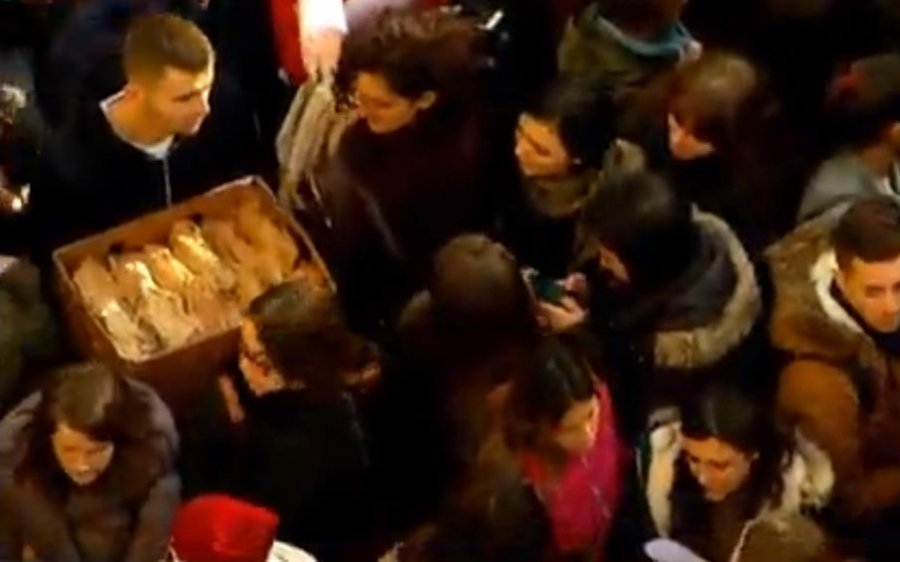 Qytetarët po solidarizohen me studentët protestues para Ministrisë së Arsimit. Nga pamjet live që po transmetojnë televizionet duke se si po i shpërndahen studentëve disa arka me bukë.