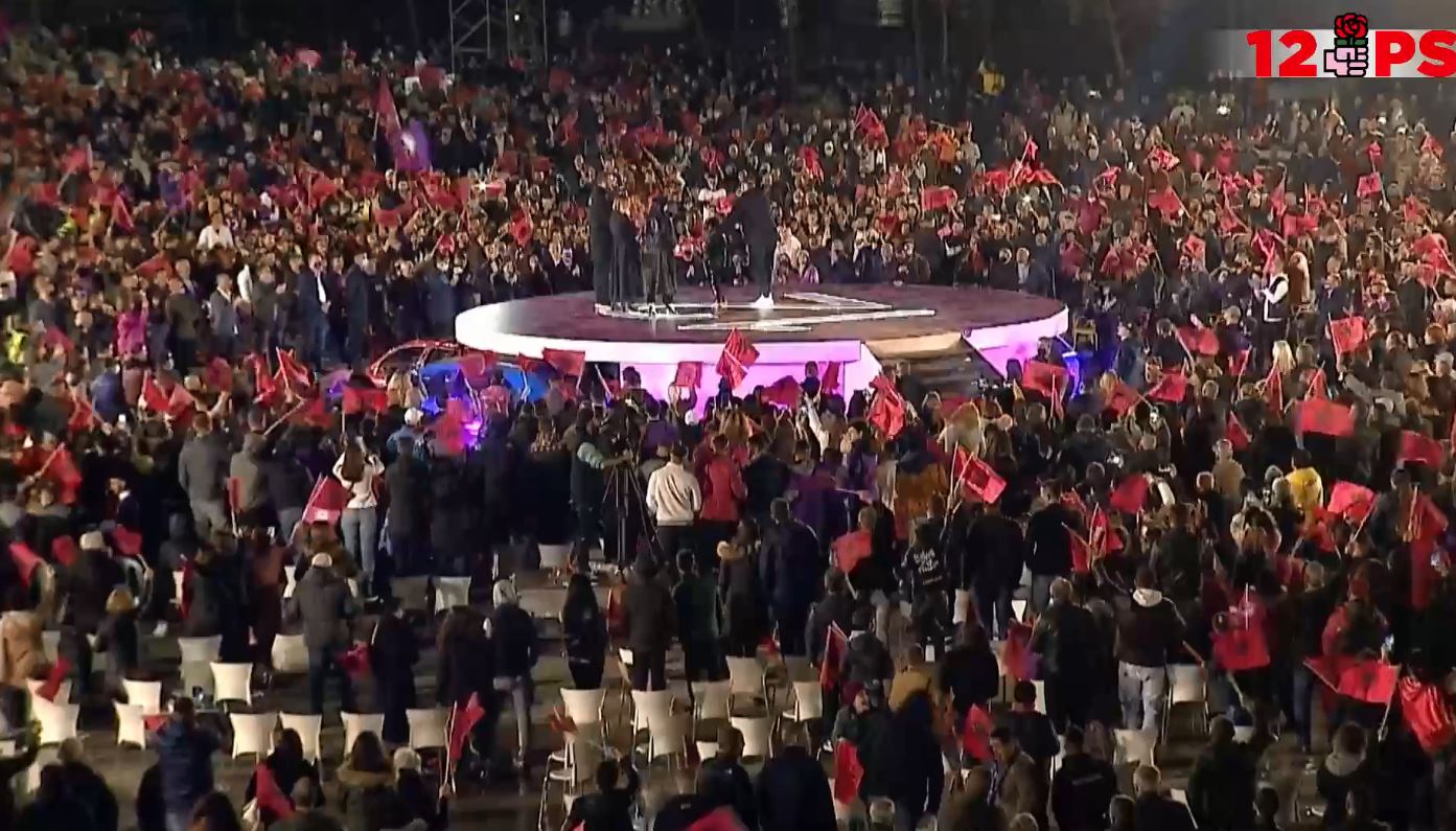 Kryeministri Edi Rama e mbylli mitingun e Partisë Socialiste në Vlorë, duke ngjitur në podium familjen e tij.