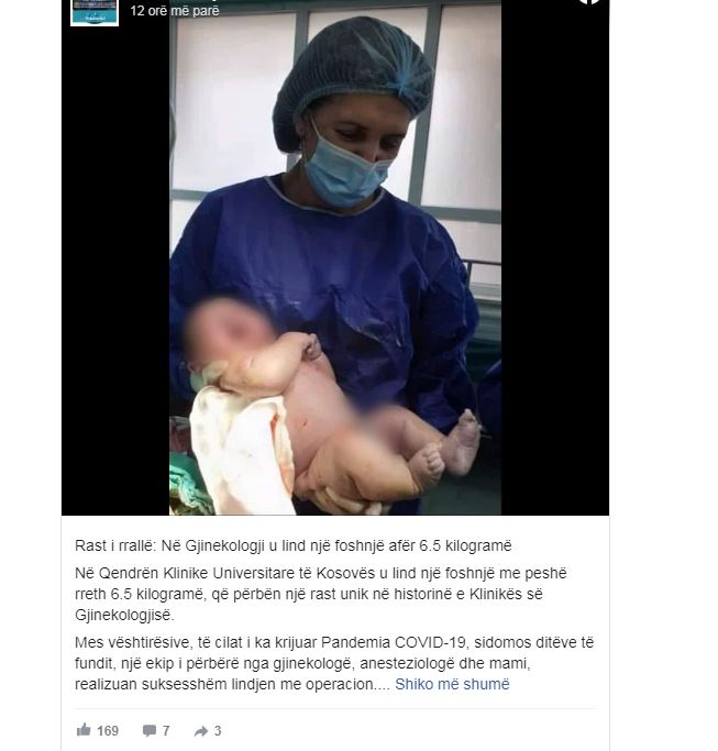 Një rast i rrallë ka ndodhur ditën e sotme në Gjinekologjinë e Kosovës, pasi u lind një foshnje 6.5 kilogram. Në njoftimin e QKUK-së bëhet me dije se edhe nëna me inicialet I.P. edhe foshnja janë në gjendje të mirë shëndetësore.