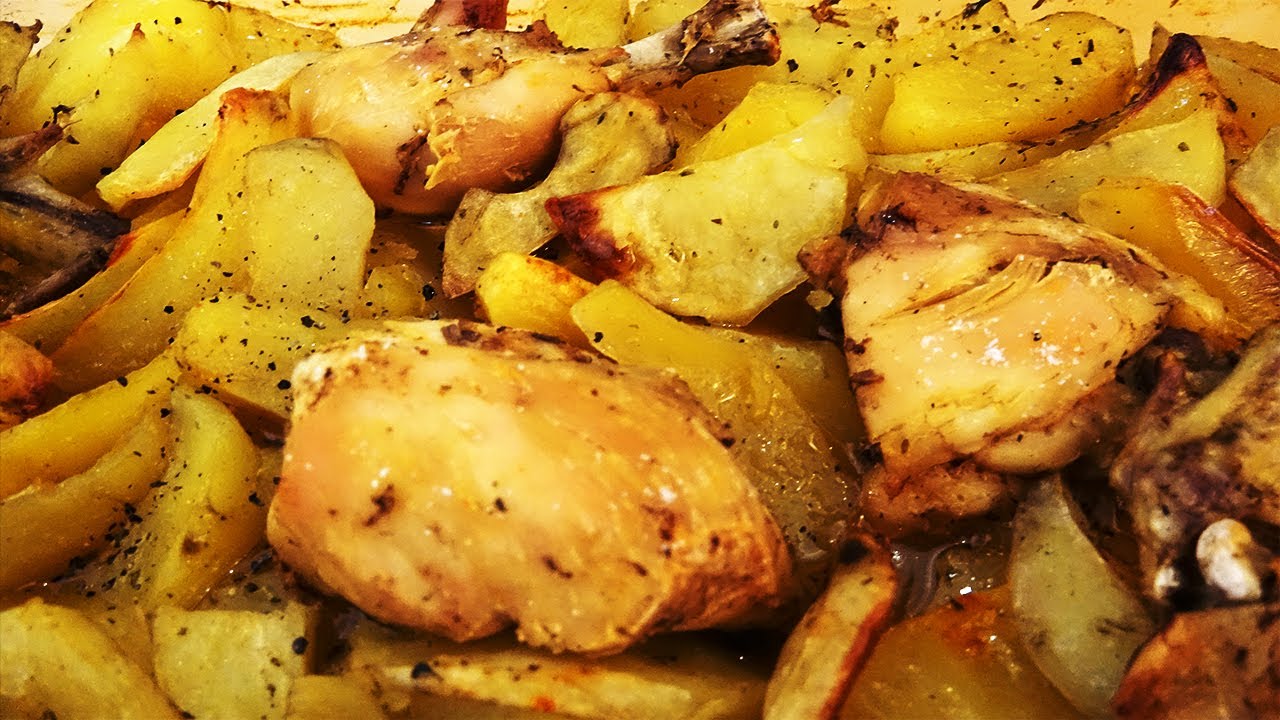 Ngrohim vajin në nje tigan dhe skuqim filetot e pulës derisa të zverdhen, më pas shtojmë hudhrën dhe e kaurdisim për një minutë bashkë me mishin e pulës. Qërojmë patatet dhe i presim në feta të trasha.