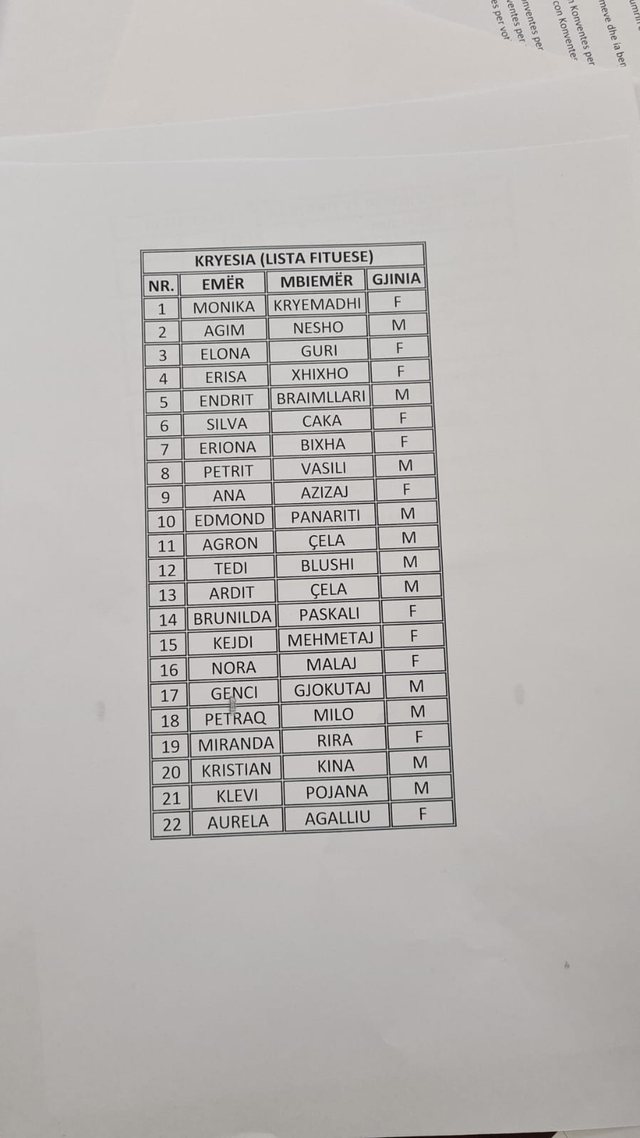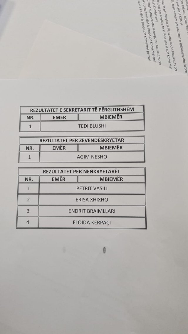 Ndërkohë që katër nënkryetarët e partisë do të jenë Petrit Vasili, Erisa Xhixho, Endrit Braimllari dhe Floida Kërpaçi.
