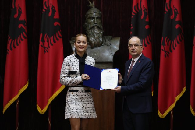 Presidenti i Shqipërisë Bajram Begaj dekoroi me Titullin “Naim Frashëri” këngëtaren shqiptare me famë botërore Rita Ora për mirënjohje për aktivitetin dhe rolin e saj si ambasadore në çështje me ndjeshmëri të lartë kombëtare dhe globale”.