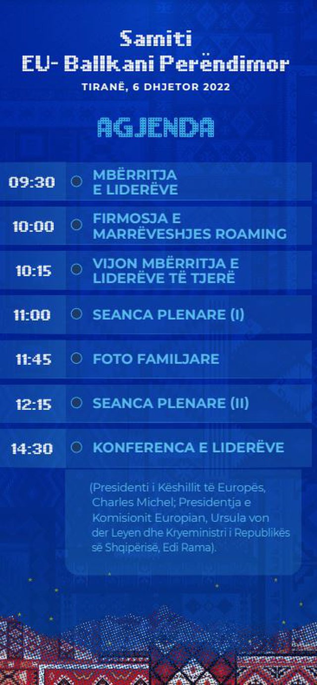 Në orën 09:30 pritet të mbërrijnë liderët europianë, ndërsa 30 minuta më vonë do të firmoset marrëveshja roaming.