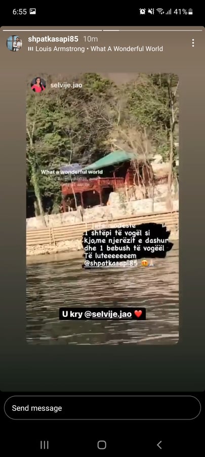 Përmes një postimi në rrjetet sociale, Selvija i ka kërkuar këngëtarit një jetë modeste, një shtëpi të vogë dhe bebe. “1 jetë modeste. 1 shtëpi të vogël si kjo me njerëzit e dashur dhe 1 bebush të vogël. Të lutem Shpat Kasapi”, ka shkruar Selvija përkrah një videoje. Ndërsa Shpati ka shkruar: U kry.
