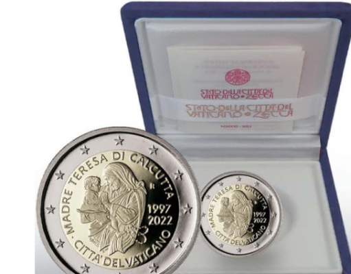 Selia e Shenjtë do të nxjerrë monedhën me vlerë 2 euro, që mban portretin e Nënë Terezës. Monedha është realizuar nga artistja Orietta Rossi.