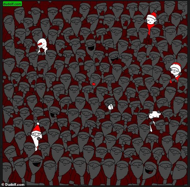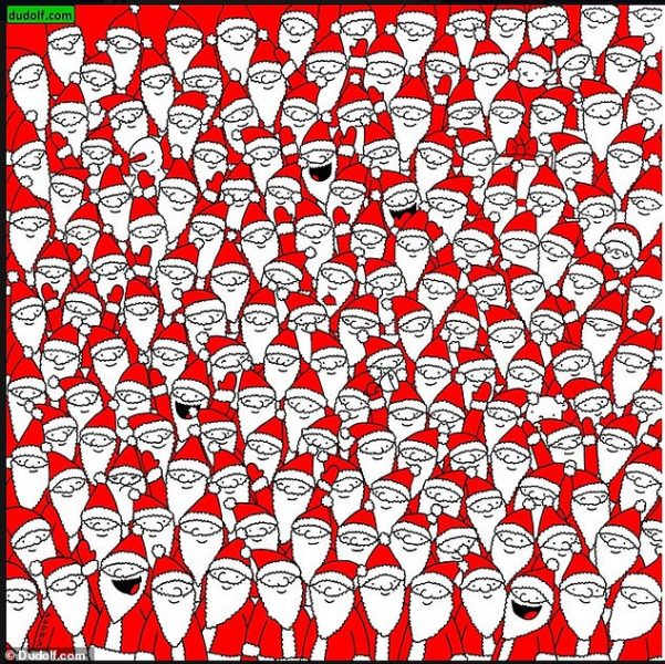 Në një ilustrim, ai ka vënë shumë Babagjyshër, si dhe shtatë objekte tjera që kanë të bëjnë me festën, gjetja e të cilave nuk është aspak e lehtë. Me Babagjyshërve të buzëqeshur, është edhe një lodër në formë të tyre por që duket shumë i mërzitur. Ariu polar, dordoleci, dy ndihmës të Babagjyshit, molla dhe një zile, janë objektet që kërkohen të gjinden.