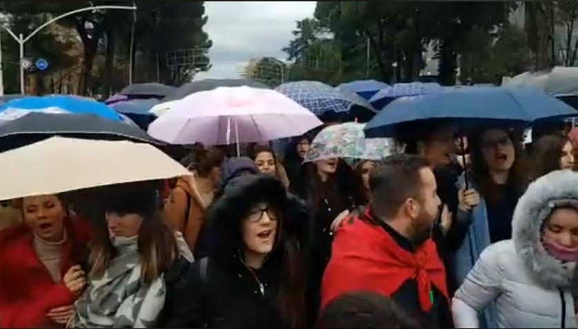 Shiu dhe i ftohti nuk ndal studentët, të gjithë mblidhen para kryeministrisë