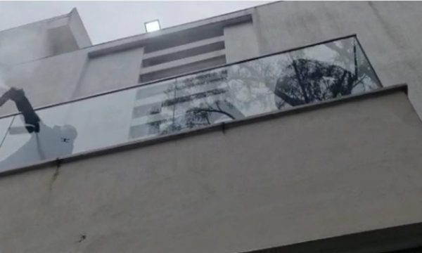 Ky është një prej momenteve kur njerëzit e Lulzim Bashës që qëndrojnë brenda selisë së PD-së kanë sulmuar me gazlotsjellës dhe shkopinj druri disa mbështetës së Berishës që u ngjitën në katin e dytë.
