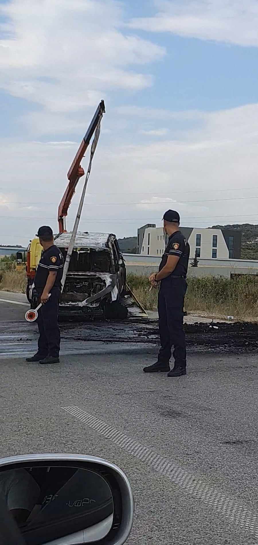 Një mjet ka shpërthyer në flakë mesditën e kësaj të diele në autostradën Vlorë-Fier. Siç shihet edhe në fotot e mëposhtme, automjeti tip ‘Range Rover’ është shkrumbuar i gjithi si pasojë e flakëve.