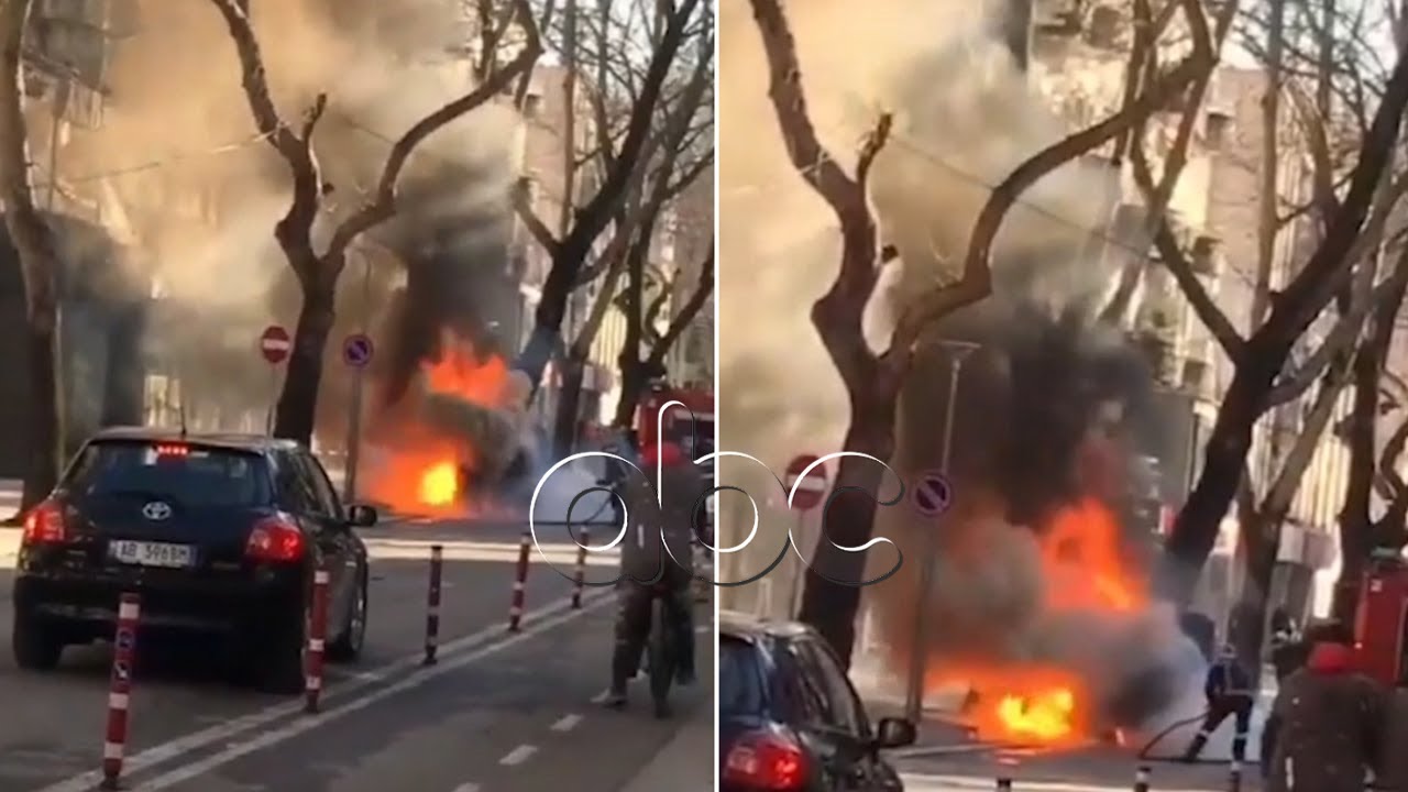 Nga pamjet e siguruara nga abcnews.al shihet se flakët kanë përfshirë të gjithë automjetin. Siç raporton gazetarja Xhensila Kodra nga të dhënat e para dyshohet se shkak i zjarrit të jetë bërë një defekt teknik i mjetit. Në vendngjarje kanë mbërritur shërbimet zjarrfikëse dhe kanë bërë të mundur shuarjen e flakëve.