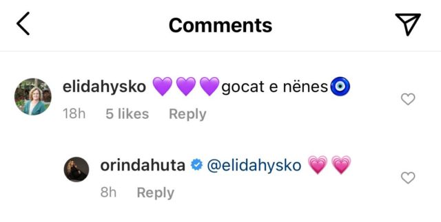 “Me gocat e mia”, ka shkruar Orinda krahas postimit të saj, ndërsa vëmendjen e merr komenti i vjehrrës së saj. “Gocat e nënës”, shkruan mamaja e Turit duke treguar kështu marrëdhënien e afërt dhe mbështetjen që i jep nuses në këtë periudhë të veçantë.
