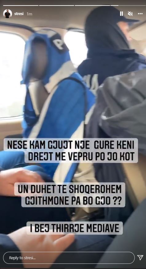 Reperi ka postuar në Instagram një foto nga furgoni i policisë dhe iu bën thirrje mediave që të vërtetojnë pafajësinë e tij. Stresi shkruan nuk ka hedhur asnjë gur dhe nëse e ka bërë atëherë policia ka të drejtë të veprojë, por jo të shoqërohet pa bërë asgjë.