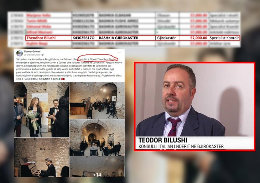 Një tjetër super skandal është zbuluar nga publikimi i listëpagesave të rreth 700 mijë qytetarëve, ku Konsulli i Nderit i Italisë në Gjirokastër, Theodhor Bilushi rezulton i punësuar në Bashkinë e këtij qyteti.