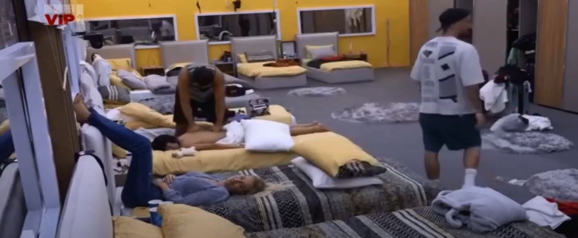 Kësaj panorame nuk i rezistuan dot Beniada dhe Semi. Mbesa e Nishanit mbajti veshur vetëm xhinset, ndërsa Semi u zhvesh e gjitha dhe i mbuloi pjesët intime me një peshqir të bardhë. Kledi vendosi që t’u bëjë edhe atyre masazh për t’i qetësuar.