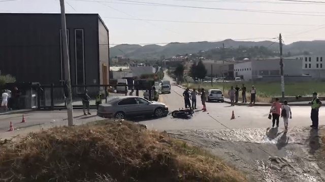 Një motor është përplasur me një makinë në afërsi të mbikalimit të “City Parkut”.