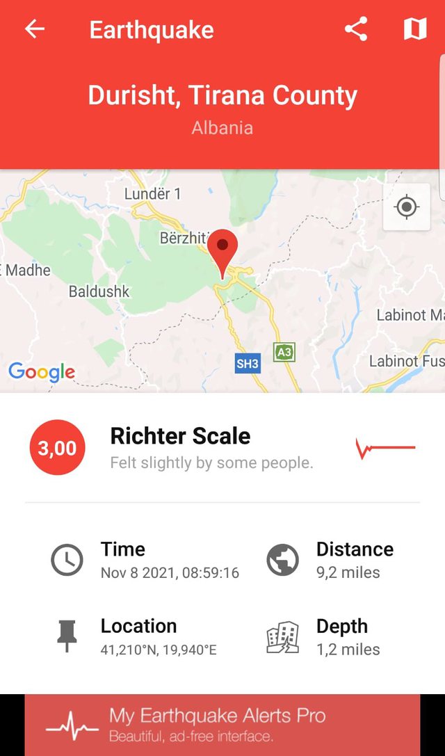 Janë regjistruar lëkundje tërmeti në Tiranë. Tërmeti ishte në magnitudë 3.0 të shkallës rihter. Epiqendra ishte në fshatin Durisht, pranë Petrelës. Disa ditë më parë Dibra ka qenë ndër zonat që u trondit nga tërmetet, ku si pasojë e lëkundjeve u dëmtua edhe njësia administrative e fshatit Orosh.