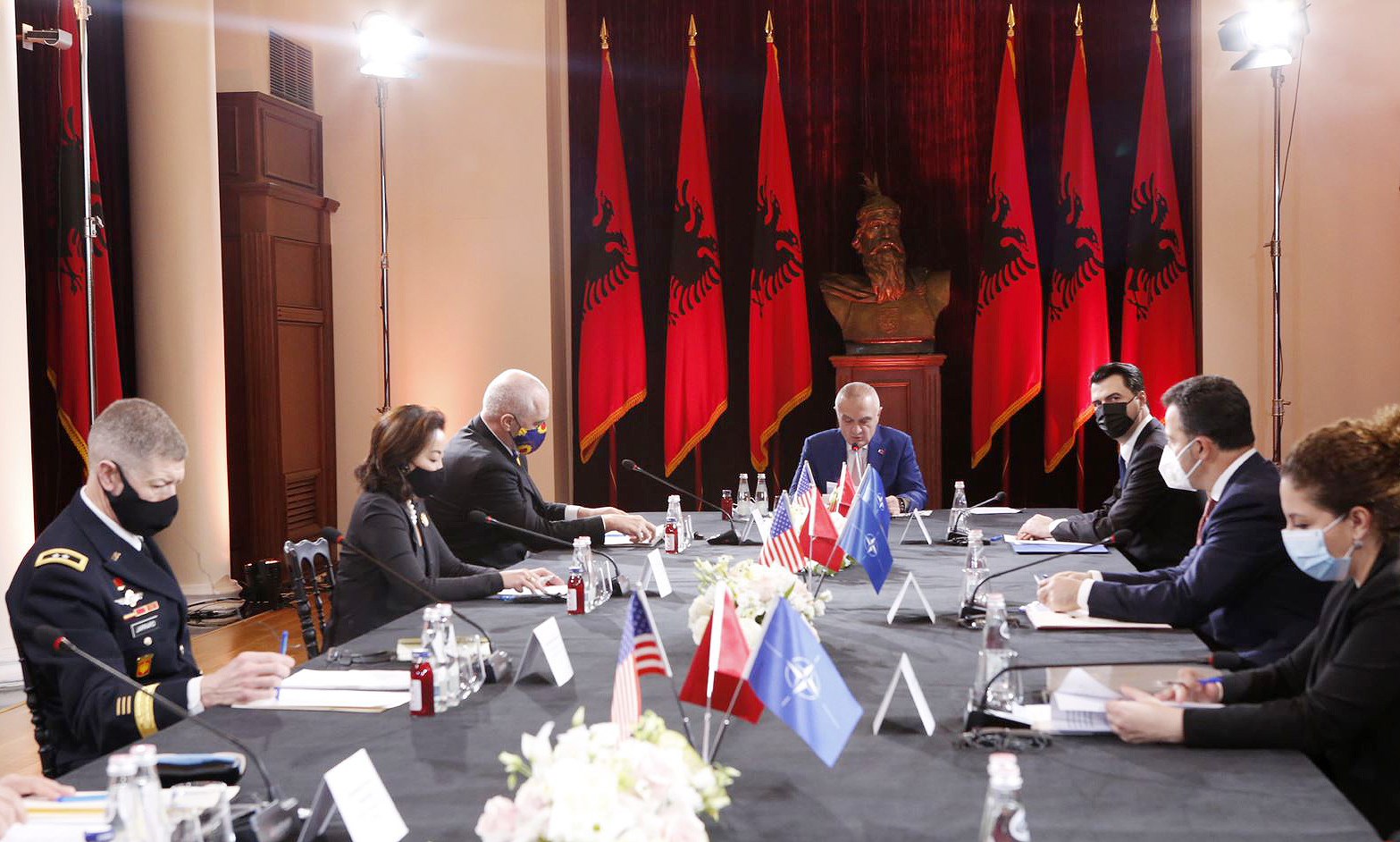 Kreu i shtetit mblodhi ditën e sotme në Presidencë kryeministrin Edi Rama, kreun e PD-së, Lulzim Basha, ambasadoren e SHBA-së Yuri Kim, ministrin Peleshi dhe zyrtarë të tjerë të sigurisë. Në fokus ishin masat përgatitore në lidhje me fazën përmbyllëse të stërvitjes ushtarake të koduar ”Defender Europe 21/DE21”, e planifikuar për t’u zhvilluar në rajon, përfshirë Shqipërinë, nga data 1 maj deri më 14 qershor 2021.