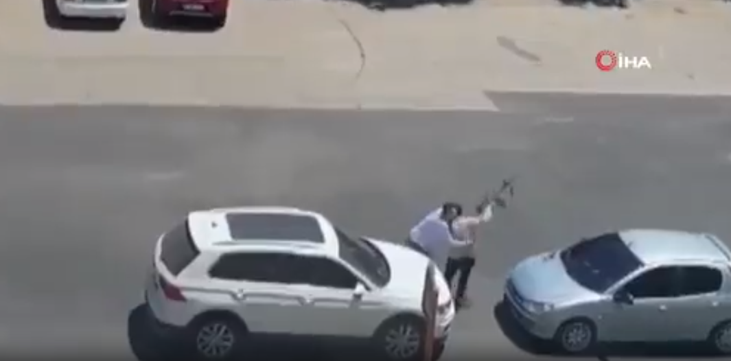 Në video, 25-vjeçari shihet se ka ndaluar makinën e tij para mjetit që drejtohej nga ish-bashkëshortja e tij, Bilge Kaya, ndërsa përleshet me babain e saj , i cili përpiqet t’i marrë nga duart kallashnikovin.