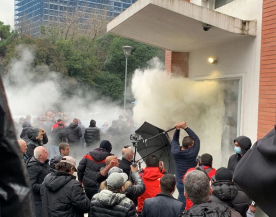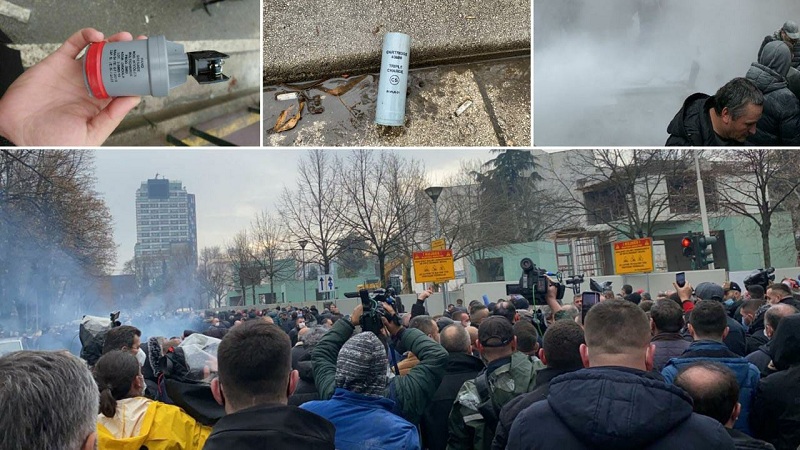 Në protestë u përdor dhe gaz lotsjellës, kryesisht nga persona që ndodheshin brenda selisë dhe donin të sprapsnin turmën. Ndërsa mbështetësit e demokratëve kanë përdorur tymuese të vogla, siç duket dhe nga fotot e mëposhtme.