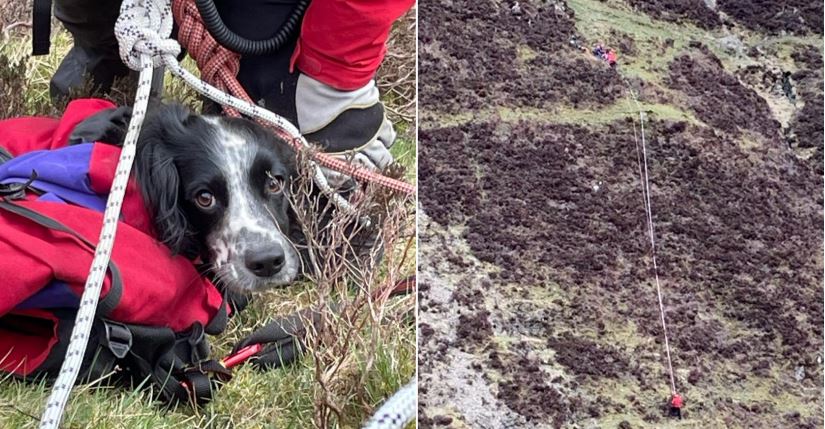 Një qenush i racës Springer Spaniel u nxor nga ekipet e shpëtimit pasi ra 300 metra poshtë një ujëvare. Louis, pesëmbëdhjetë muajsh rrëshqiti dhe më pas ra poshtë shtegut kryesor në ujëvarën Gray Mares Tail pranë Moffat, Dumfries dhe Galloway në Skoci.