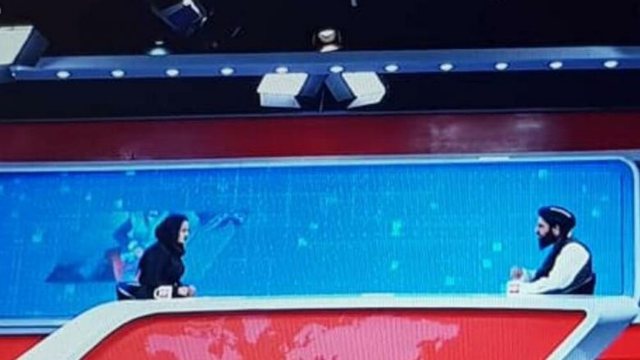 Our female presenter is interviewing a Taliban media team member live in our studio @TOLOnews #Afghanistan pic.twitter.com/G6qq1KWKOH