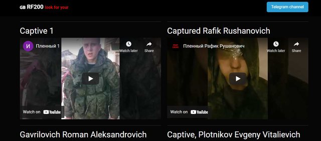 Ministria e Brendhsme e Ukrainës ka hapur një faqe në internet ku ka video dhe foto të ushtarëve rusë të kapur rob, apo dokumenta të ushtarëve rusë të vrarë në përpjekje me forcat ukrainase.