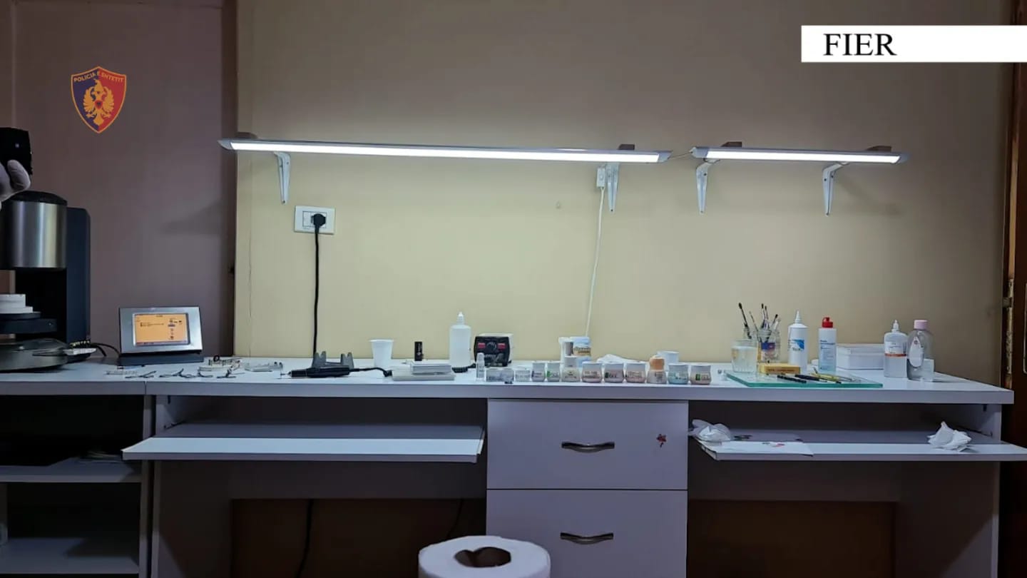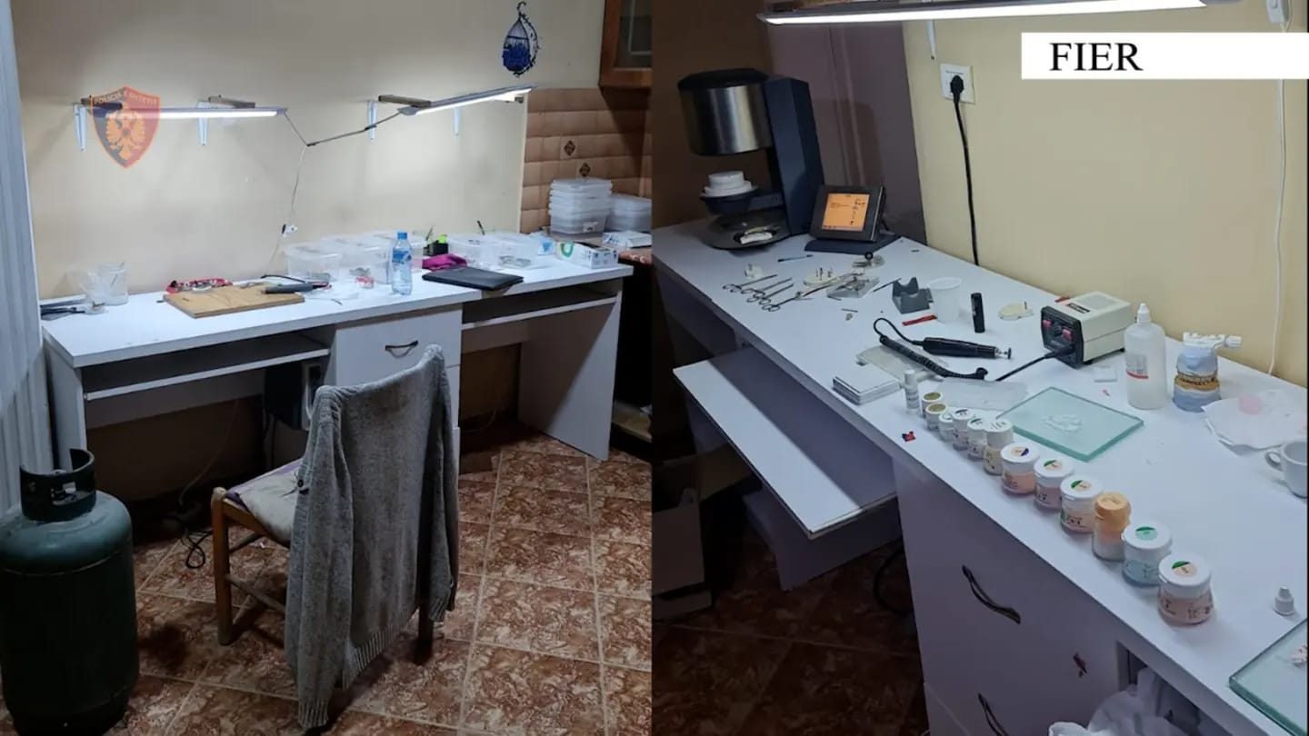 Shërbimet e Policisë konstatuan se ky shtetas kishte përshtatur një banesë të marrë me qira, në lagjen “1-Maji”, si laborator dentar, ku ushtronte profesionin e laborantit, i papajisur me licencën e nevojshme, si dhe përdorte barna dhe pajisje, të dyshuara të rrezikshme për shëndetin e pacientëve.