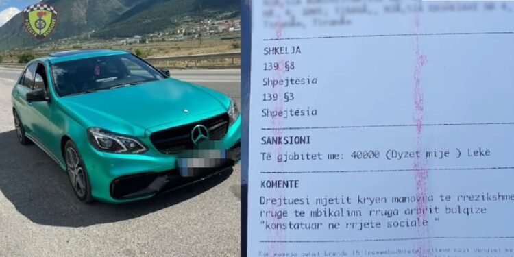 Një shofer është ndëshkuar me një gjobë të majme nga policia e Dibrës pasi kreu manovra të rrezikshme në rrugë.