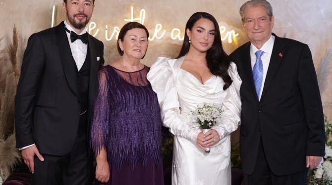 “Të dashur Armina dhe Shkëlzen! Dasmat, fjalime nuk duan ndaj dhe unë shkurt dua të them vetëm dy fjalë. Uroj nga zemra Arminën dhe Shkëlzenin, të cilët kurorëzojnë dashurinë dhe miqësinë e tyre disa vjeçare, sonte në këtë ceremoni, në këtë dasmë, me miqtë dhe të afërmit e tyre” – tha Berisha.