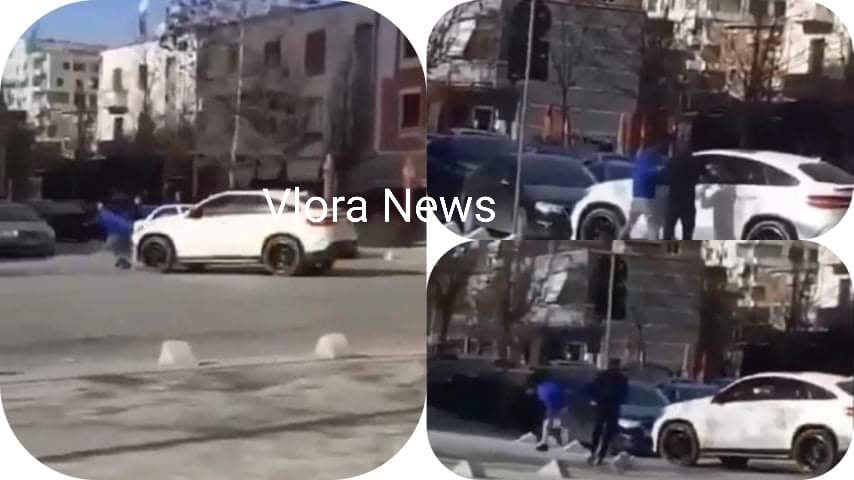 Një sherr mes dy grupe të rinjsh ka ndodhur mesditën e sotme pranë kryqëzimit “Rinia” në Vlorë. Siç shihet nga pamjet e publikuara nga “Vlora News”, një djalë me makinë luksoze tenton të shtypë të riun, ndërsa një tjetër me xhupin ngjyrë blu mban në dorë një thikë. Më pas shoferi goditet nga dy të rinj të cilët largohen menjëherë. Nuk dihet arsyeja e këtij sherri mes dy të rinjve. Pritet reagimi i policisë.