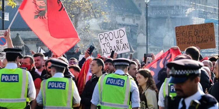 Mijëra emigrantë shqiptarë u mblodhën në urën Westminster dhe marshuan drejt Pallatit të Westmisterit duke i kërkuar qeverisë respektimin e te drejtave tyre dhe duke thënë se jo të gjithë janë kriminelë.