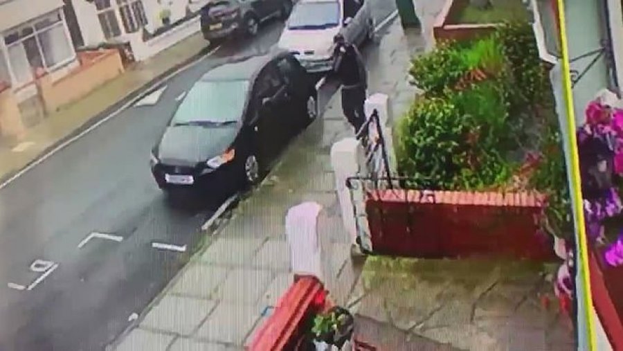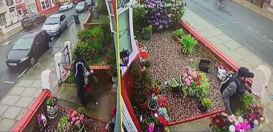 Ky është momenti tronditës kur një hajdut vjedh në mes të ditës një palë vazo me lule të varura në derën e shtëpisë së një gruaje të moshuar. Një kamera e instaluar në derën e 80 vjeçares është një grackë e ngritur qëllimisht e cila tregon se si ky hajdut hyn qetësisht sikur të ishte shtëpia e tij në oborrin e shtëpisë së Angela Littlewood në Poulton, Merseyside para se të hiqte qetësisht vazot me lule shumë ngjyrëshe dhe t’i merrte me shpejtësi ato me vete.