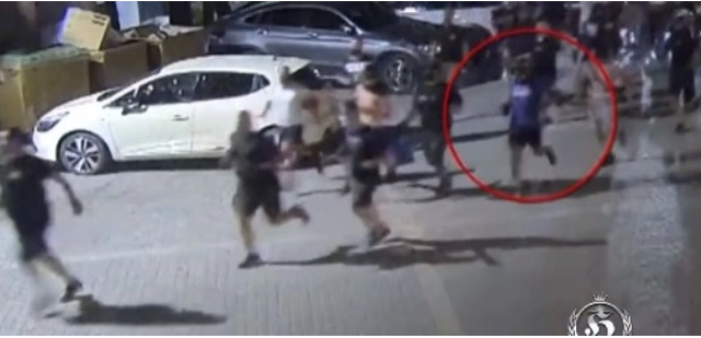 Në video shihet tifozi duke u sulmuar, ndërsa më pas shihet duke u futur në një shitore për të kërkuar ndihmë.