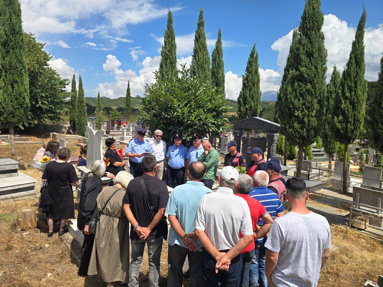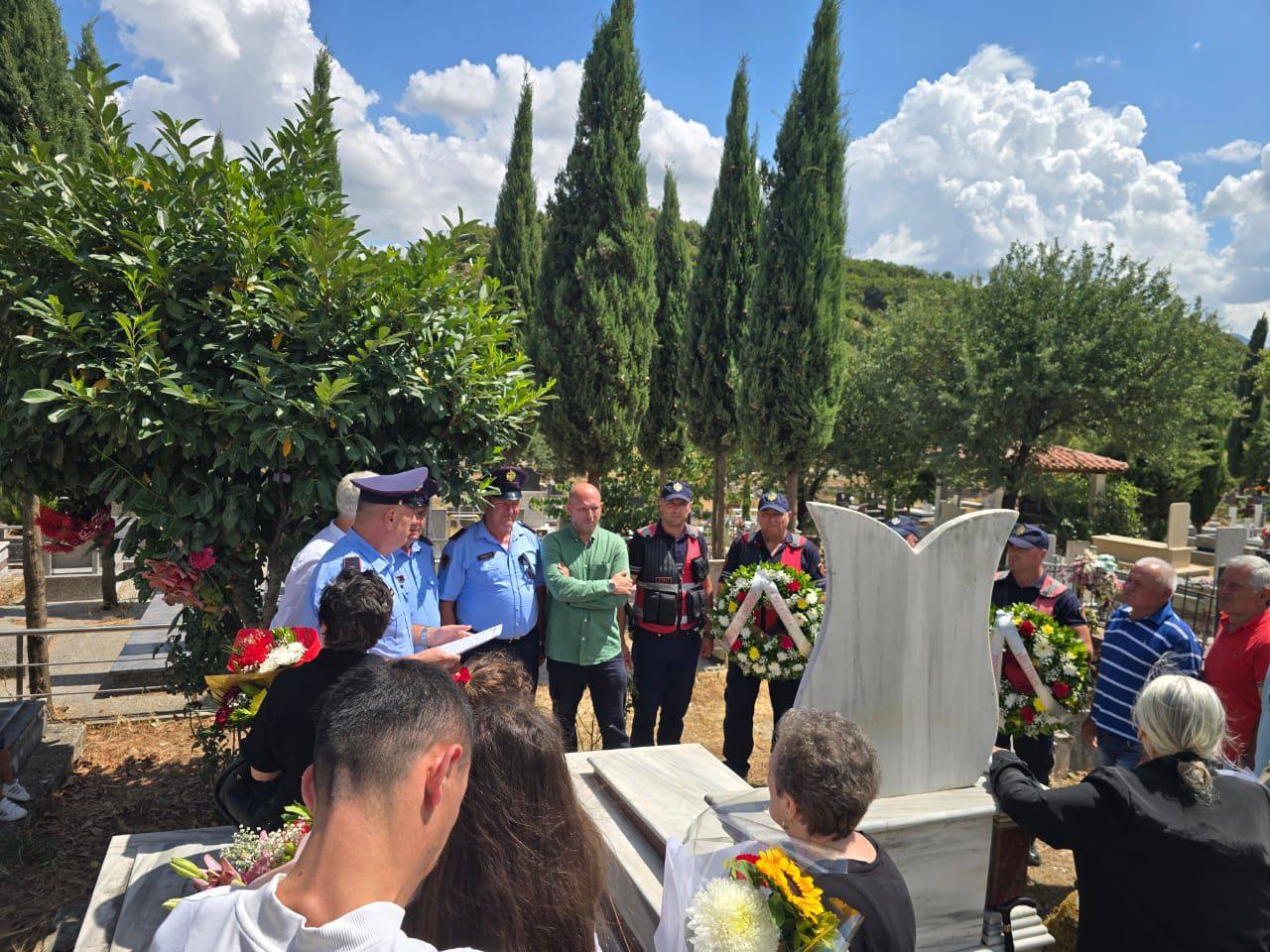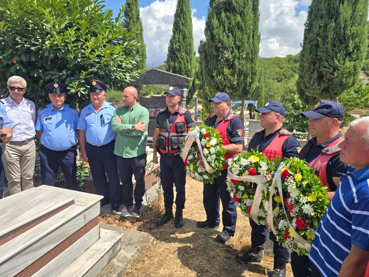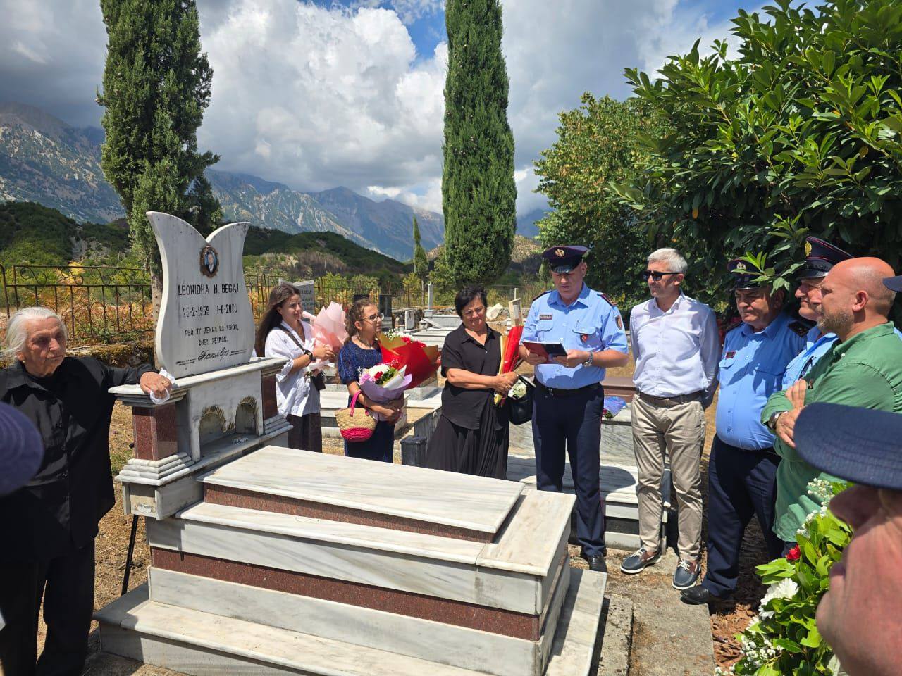 Ceremonia u zhvillua në varrezat e fshatit Vranisht, me pjesmarrjen e familjarëve të Dëshmorit Leonidha Begaj, Zëvendësdrejtori për Sigurinë dhe Policimin në Komunitet në DVP Vlorë, Shpëtim Hasanaliaj si dhe kolegë e punonjës të Drejtorisë Vendore të Policisë Vlorë.