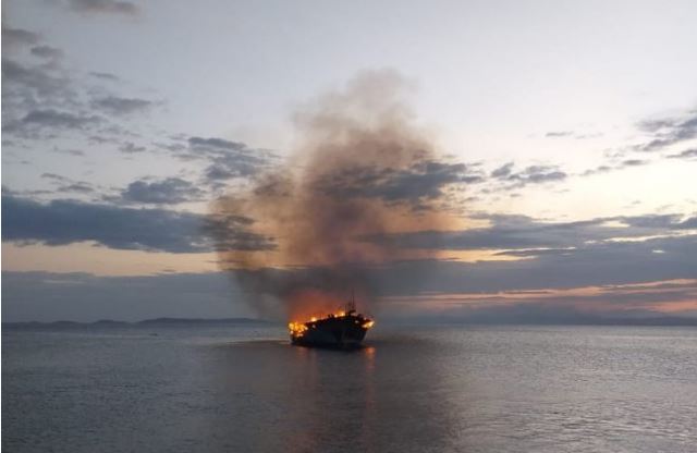 Në orët e pata të mëngjesit të sotëm anija turistike ‘Aqua Marine’ është përfshirë nga flakët pranë brigjeve të Karaburunit në jug të vendit. Ekuipazhi me 5 persona në bord ka qenë në gjumë në momentin kur janë shfaqur flakët dhe kanë arritur të shpëtojnë pa dëmtime duke u hedhur në det. Anija turistike përshkruante linjën Vlorë-Karaburun.