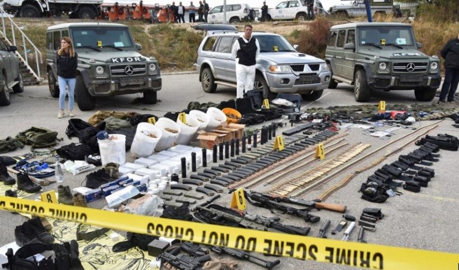 Një veturë rëndë e blinduar, vetura xhip 24 copë, motorë 4×4 2 copë, mina kundër këmbësorisë 8 copë, zolla të mbushura 29 copë, predhë minahedhësi 82 milimetërsh 54 copë, predhë minahedhës 62 milimetërsh 88 copë, granatë dore 75 copë, mina antitanke 8 copë, eksploziv dinamit 150 copë, detonarë elektrikë 23 copë”, tha gjatë një konference me gazetarë në jug të Mitrovicës, drejtori i policisë së Kosovës Gazmend Hoxha.