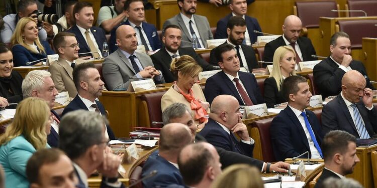 Për qeverinë e 44-të të Malit të Zi votuan kundër 19 deputeë, ndërsa vetëm një nga ligjvënësit e pranishëm në sallë abstenoi.