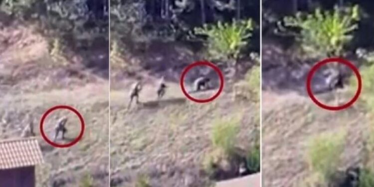 Pamjet që janë bërë virale, shfaqin katër pjesëtarë serbë të këtij grupit terrorist, që në një moment e braktisin mikun e tyre me gjasë të plagosur – duke e lënë të vetëm në pyll.
