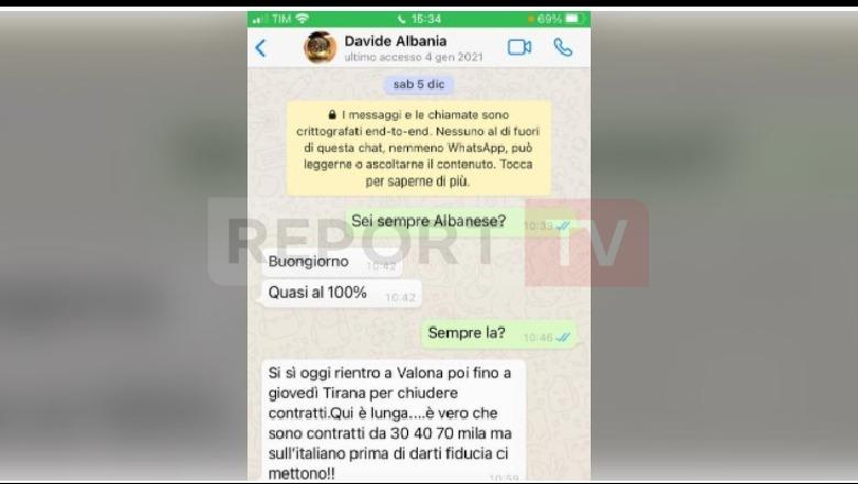 Davide, duke iu përgjigjur mikut të tij që e pyet se ku është, në fund shkruan: “Po po sot kthehem në Vlorë pastaj deri të enjtenb do të jem në Tiranë për të mbyllur kontratat. Këtu me të vërtetë zgjat shumë… nuk është çështja vetëm tek kontrata që mund të jetë 30 ,40, 70 mijë euro, shqiptarëve qoftë për Italianët apo të tjerët u duhet kohë për t’iu besuar !! “.