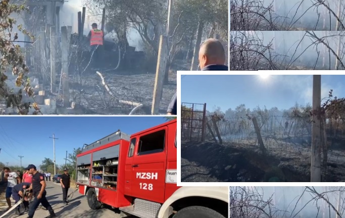 Zjarr pranë varrezave në Fier, digjet edhe një shtëpi